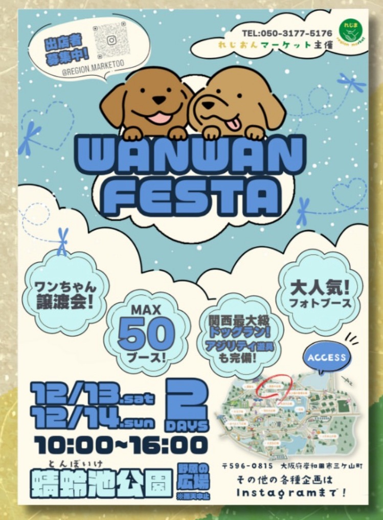 12月13日(土)は大阪岸和田市にあるとんぼ池公園にて開催されたわんわんフェスタに出店してきました。